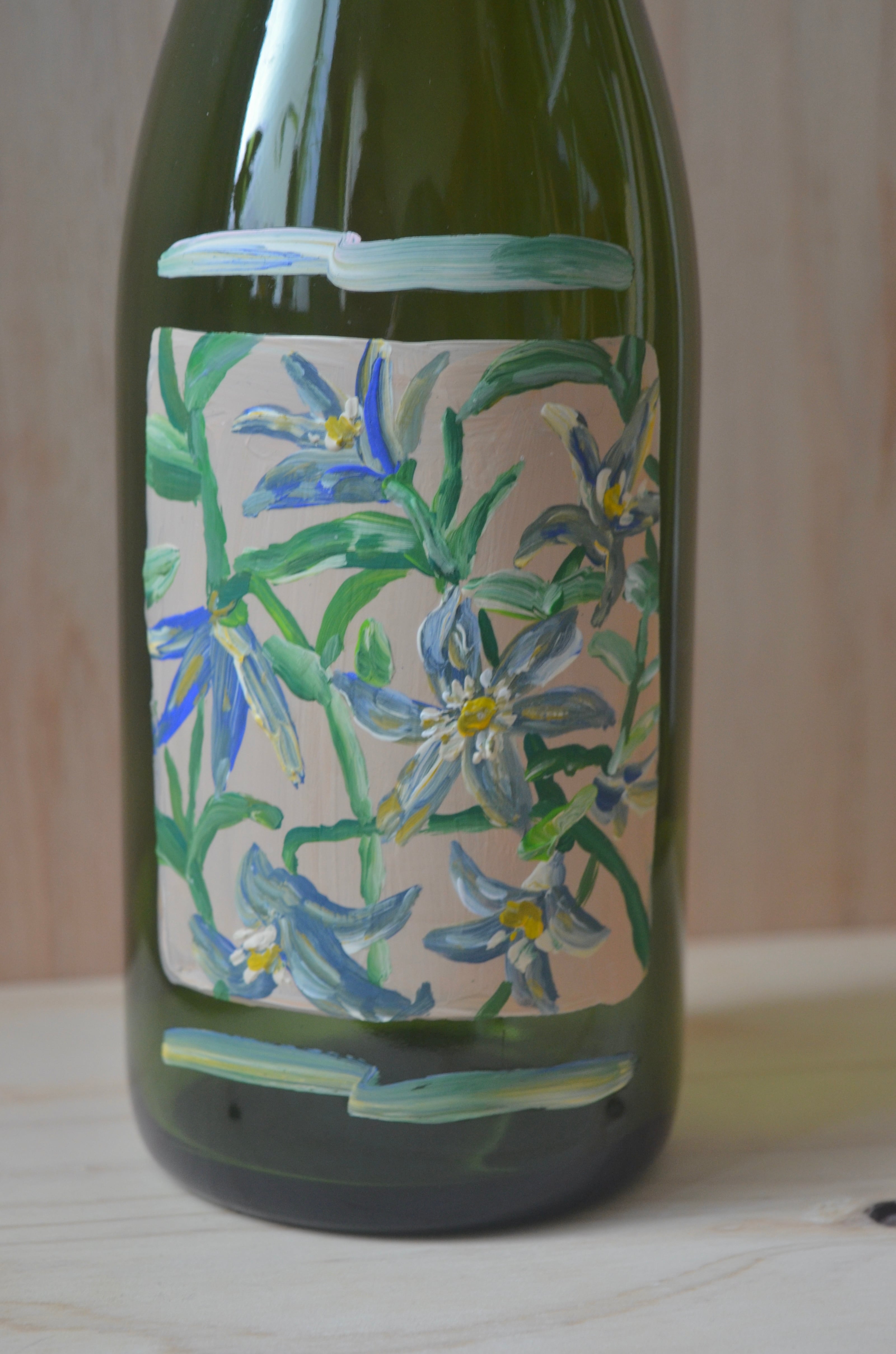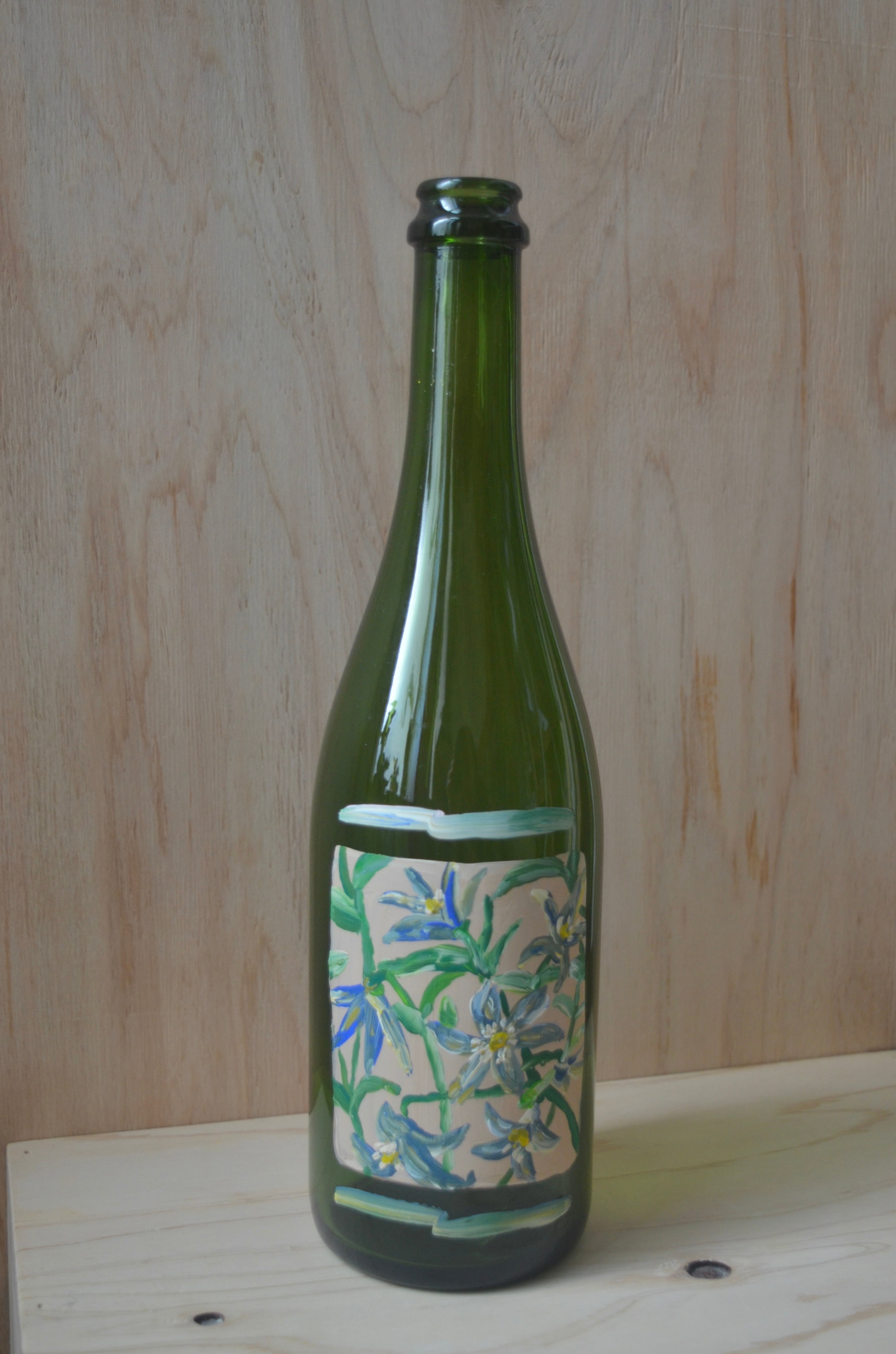 こちらのフラワーベースはアクリル絵の具で描いています。爪で引っ掻いたり、金ダワシで強くこすると絵が消えてしまいます。瓶を洗う際は、手で優しく洗い、タオルで水気を吸い取るように拭いてください。
