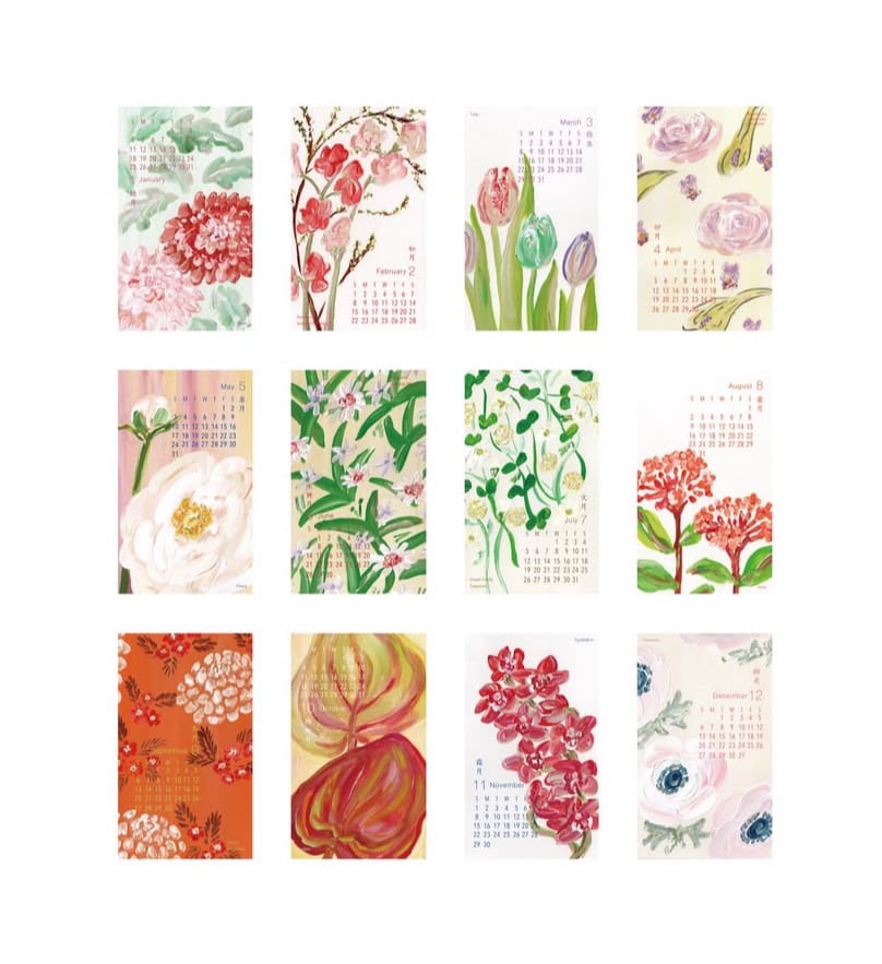 店主のはづきさんが選ぶ12ヶ月の植物を描きました。お店でもよく見るお花ばかりです。