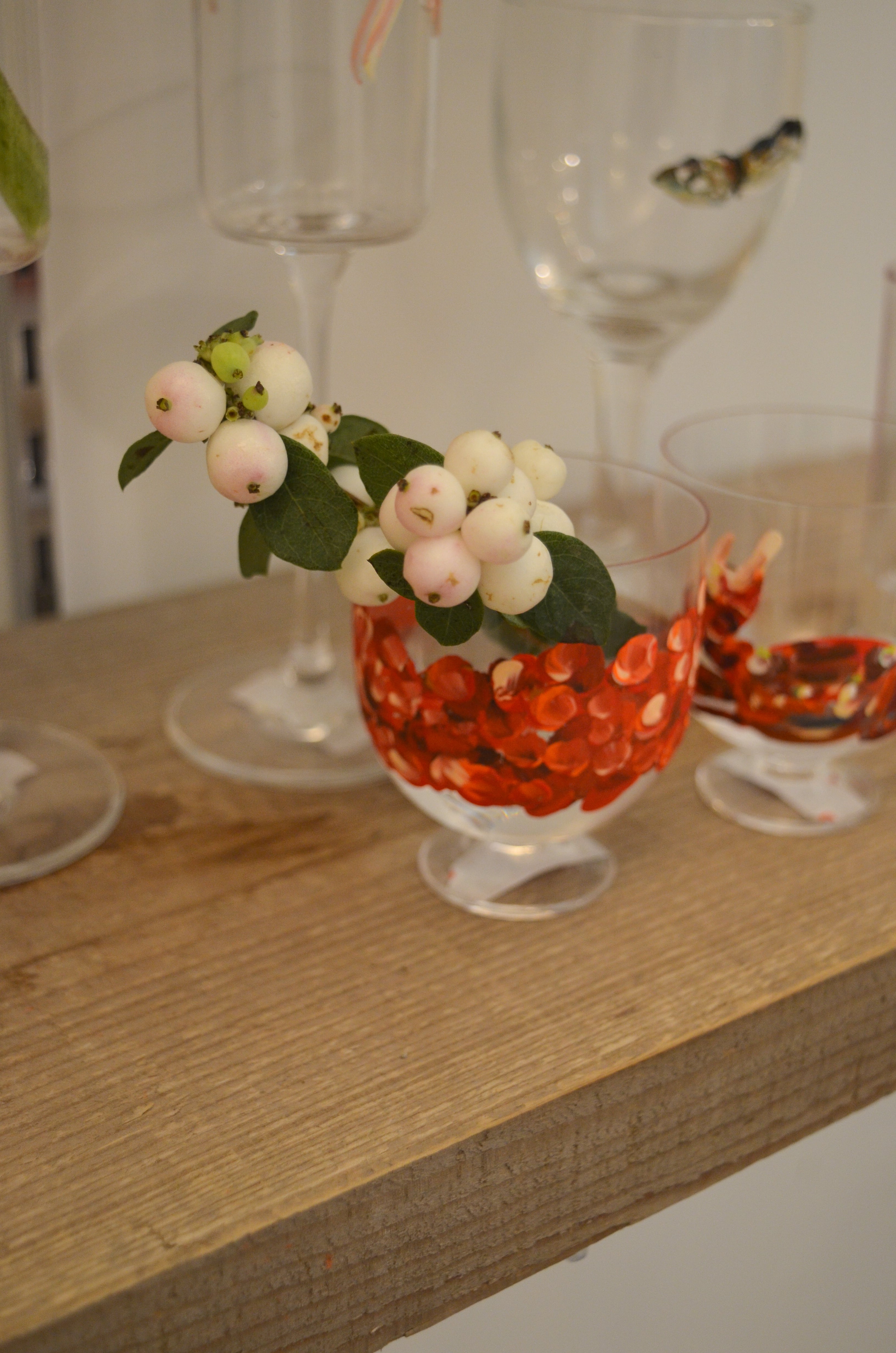 こちらのフラワーベースはアクリル絵の具で描いています。爪で引っ掻いたり、金ダワシで強くこすると絵が消えてしまいます。瓶を洗う際は、手で優しく洗い、タオルで水気を吸い取るように拭いてください。