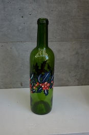 こちらのフラワーベースはアクリル絵の具で描いています。爪で引っ掻いたり、金ダワシで強くこすると絵が消えてしまいます。瓶を洗う際は、手で優しく洗い、タオルで水気を吸い取るように拭いてください。